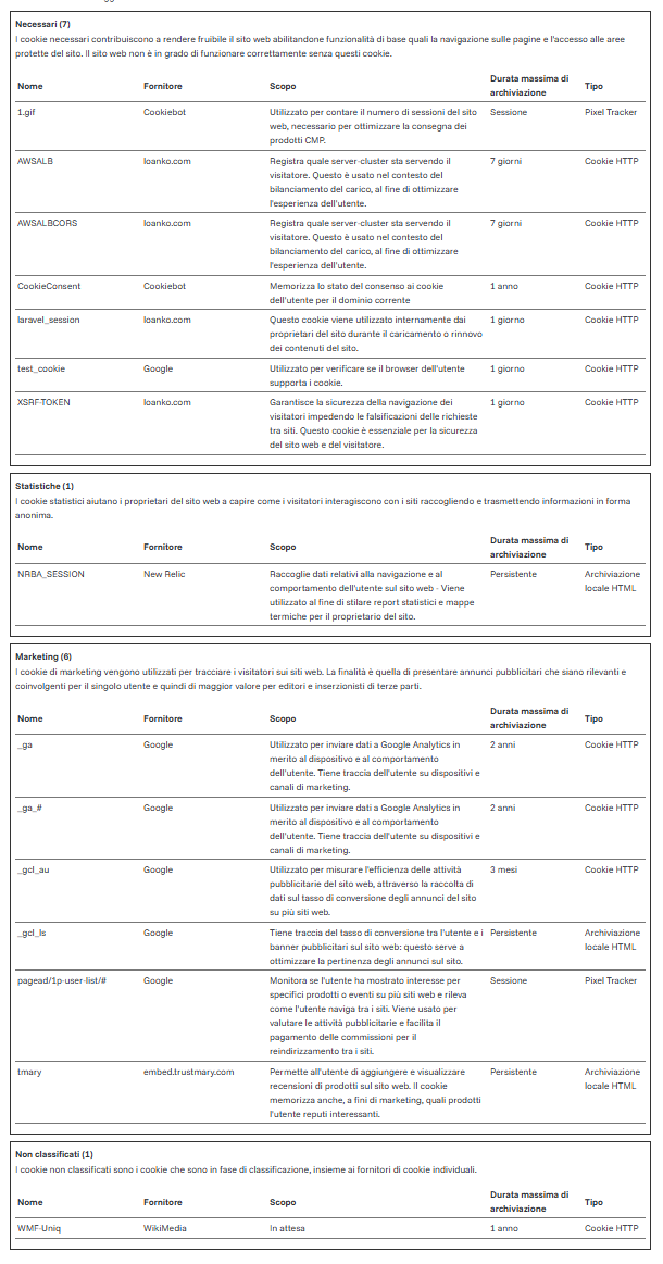 Il tuo consenso si applica ai seguenti siti web: www.loanko.com