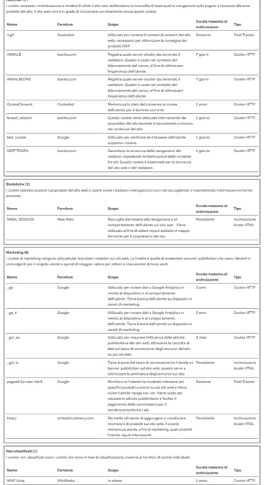 Di seguito è riportato un elenco dei cookie che utilizziamo: